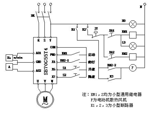 本方案選用的SB70G系列矢量控制變頻器,系國產主要品牌,高、中、低應用檔次系列齊全,對主要國際著名品牌機的兼容性較為全面。用該品牌SB70G系列對西門子MM440系列變頻器進行直接代換及通訊兼容,以期進一步降低企業應用成本。