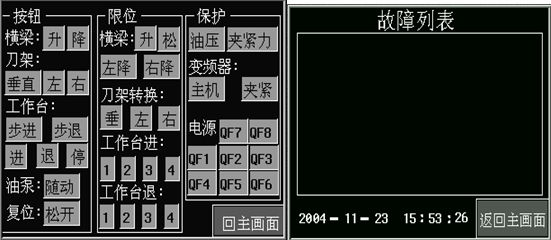 工作臺在運行過程中,若潤滑油泵電機回路或工作臺電機回路故障,工作臺會在切削過程走完此一行程,在前進末了或后退時才能停止。設置這個保護環節的目的是在切削過程中發生故障突然停機,會造成刀具損壞,或影響加工工件的表面質量。因此發生故障后,讓它在后退末了時停機。