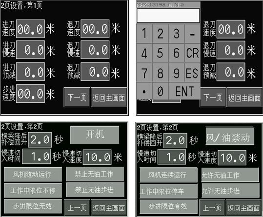 橫梁下降時,當下降按鈕松開后,橫梁電機尚有回升動作以消除絲桿與螺母間隙。此時將逆向上升運行一段時間,然后停止夾緊。此時間由用戶在觸摸屏上可自由設置。