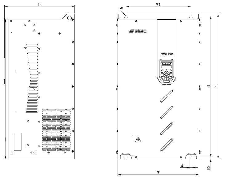 變頻器型號 | W (mm) | W1 (mm) | H (mm) | H1 (mm) | H2 (mm) | D (mm) | d (mm) | R (mm) |